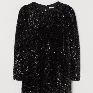 NEW H&M Women's Puff-sleeved Dress Black/sequins