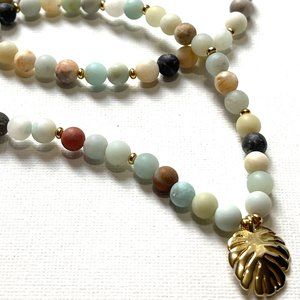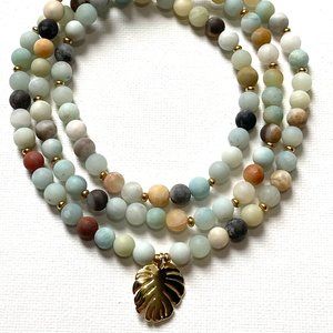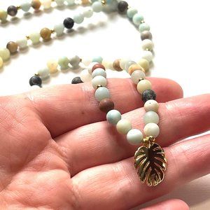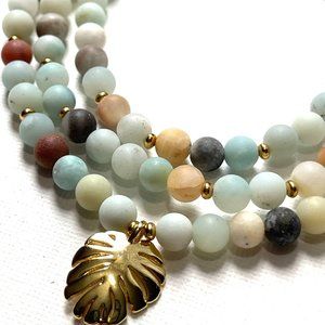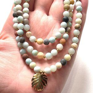 Made with genuine frosted Amazonite 6mm and a 14K gold-filled leaf charm.