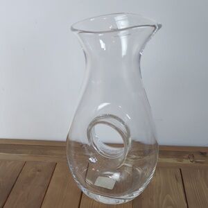 (NEW) Handmade in Poland Clear Glass Donut Hole Wine Pitcher Decanter
