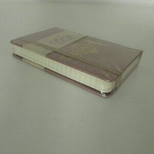 Very small pocket notebook. Hardcover with elastic band and ribbon page marker. 192 ruled pages.