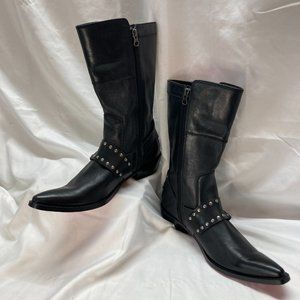 NEW Harley Davidson Low Heel Mid Calf Moto Western Leather Boots Size 8 Black.