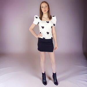 NEW Heart print top white shirts white tops Blackhearts cute ruffle sleeves
