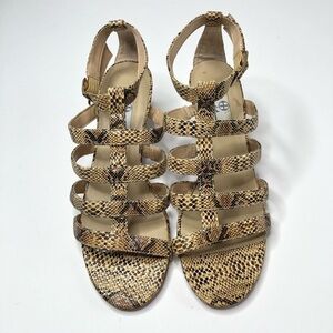 NEW Hot in Hollywood Tan Taupe Snake Skin Gladiator Strappy Ankle Sandals Shoes