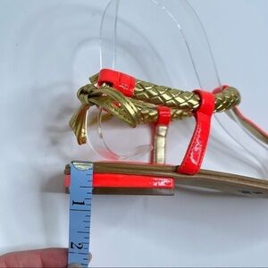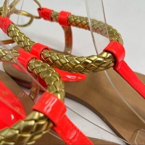 NEW WITHOUT TAG Isolá Bright Neon Coral Cleopatra Gold Braided Tie Back Thong Sandals