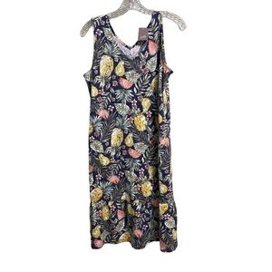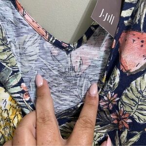 NEW J Jill Dress Multicolor Flounced Hem Double V-neck Knit Pineapple Tropical