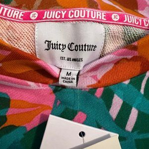 NEW! JUICY COUTURE Tropical Palm Print French Terry Roll Cuff Crop Top, Size M