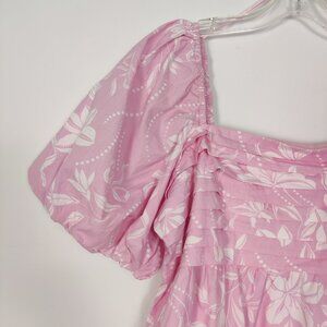 NEW Jessica Simpson Women's Blouse Size XL Cotton Pink White Floral Pleated Airy Flowy