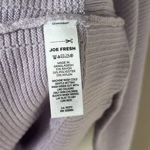 Brand new with tags Joe Fresh ribbed sweater size medium. Beautiful light lavender purple is perfect for spring.
