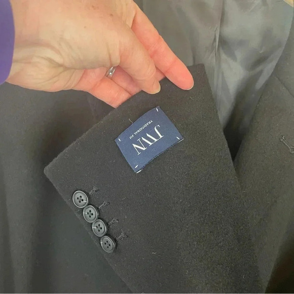 New without tags - the Mason Wool Cashmere Blend Overcoat from John W. Nordstrom (JWN). Size 50R. Length ~41". Front three button closure. Four button cuff detail. Side slant pockets, internal pockets and back vent (still tacked closed). Lined. 95% wool, 5% cashmere.