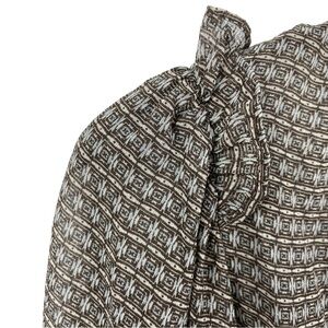 ** NEW Joie Sheer Brown Patterned V Neck Ruffle Shoulder Blouse Size M