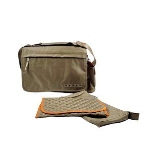 Multi use messenger diaper bag with magnetic closure. Detachable and adjustable straps. Spacious and structured, this bag provides ample space for all your daily essentials, and several interior pockets keep everything neat and organized. Insulated side pockets keep drinks and snacks at the perfect temperature for baby, changing pad and pouch are also included.