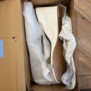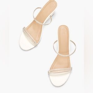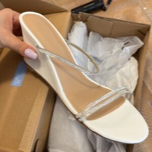 NEW Just Fab Rhinestone Perrie Minimalist White Wedge Heel Slip-on Sandal