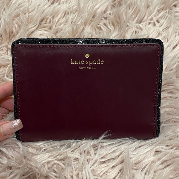 πŸ†•βœ¨ NEW KATE SPADE ♠️ WALLET BLACK SPARKLE DETAIL COLOUR: DEEP PLUM
