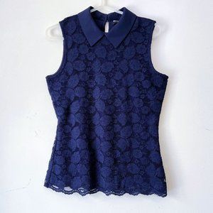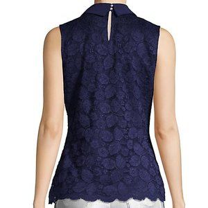 NEW! Karl Lagerfeld Paris Lace Blouse Top W Collar in Navy Blue, Size XS