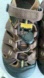 Sturdy brown sandals with black accents. Ideal for active play. Easy to wear and secure.