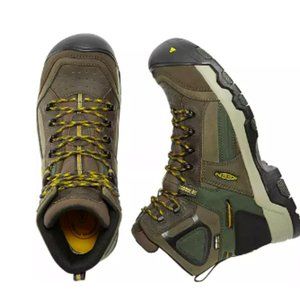 In tough conditions, trust in KEEN® Men’s Davenport Mid AL waterproof composite toe work boots to get you through. With the design of a hiking boot but the performance of a work boot, the Davenport offers support, flexibility and protection to keep you on the job. A KEEN.Dry™ waterproof membrane ensures lasting dryness no matter the conditions, while the asymmetrical composite toes protect from a variety of hazards. Enjoy improved stamina thanks to the metatomical dual density EVA footbed and impact-absorbing PU midsole. And the non-marking rubber outsole resists oil, slips, and electrical hazards for surefooted performance.