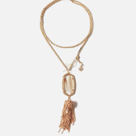 NEW! Kendra Scott Rayne 14k Rose Gold Dust Glass Long Necklace Tassel Dust $115