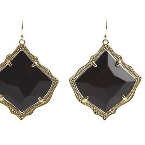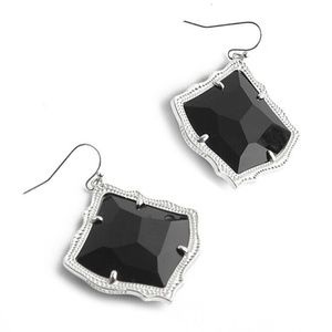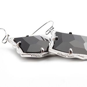 NEW Kendra Scott SILVER Framed Kirsten Black Glass Drop Earrings w/ Dust Bag