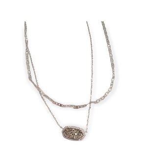 NEW Kendra Scott Silver Elisa Platinum Drusy Quartz Multi Chain Necklace