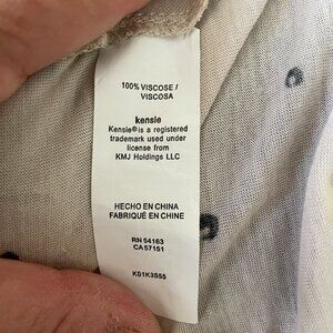Selling a NEW Kensie Women’s Cream/Black Asymmetrical Lightweight polka dot Tshirt-Large. New without tag. A cute and comfortable Asymmetrical Tshirt. Thin soft Viscose.