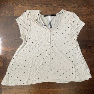 NEW Kensie Women’s Cream/Black Asymmetrical Lightweight polka dot Tshirt-Larg