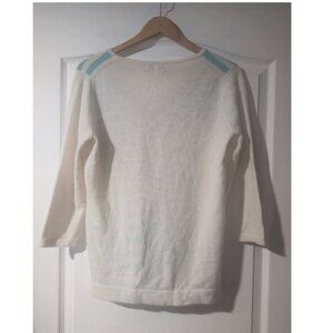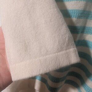 NEW! Kinross | 100% Cashmere V-Neck Sweater In Ivory & Aqua Stripes