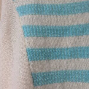 Color: Ivory with aqua blue horizontal stripes