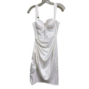 NEW LEAU SZ SM HALO SATIN BUSTIER DRESS WHITE