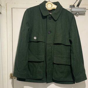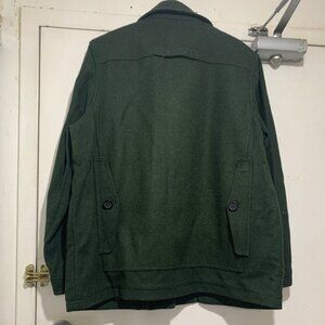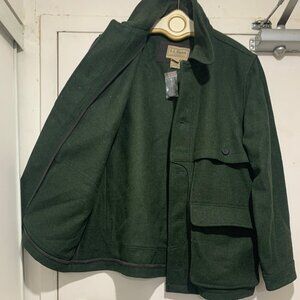 L.L. Bean Unisex Jacket, Mid-weight, Size L, Color Green, 85% Wool, 15% Nylon, No Lining, Breast Pockets, Front Pockets, Back Pockets, Closure Button Down, Good Condition, Brand New, Casual Jacket, Great Look, Great Fit.