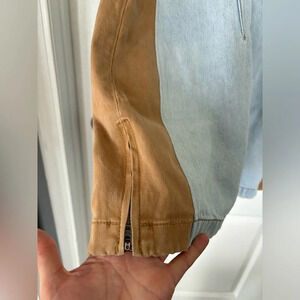 This flattering denim dress is such a fun piece! Tan panel sides and seams create the illusion of hourglass curves as the dress itself sits so comfortably on the hips. Little side zippers to further adjust the shape or add some saucy little slits! Pairs perfectly with cowboy boots or sneakers!