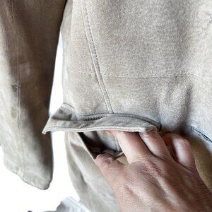 This item is pre-owned. As with many natural suede garments, there is some minor natural wear, which adds to its character.