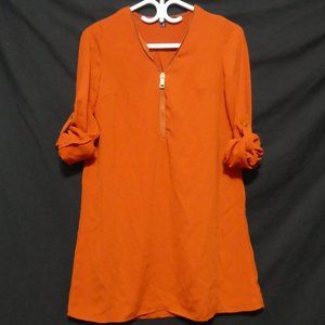 NEW LOOK | small | Burnt Orange Tunic Shirt | Belt Loops | Roll Tabs | NWOT