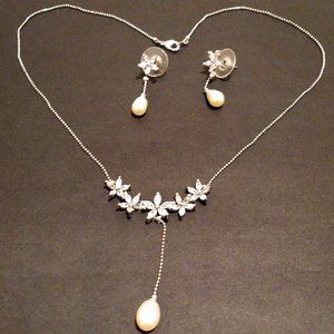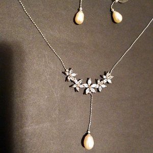 NEW La Creme Necklace & Earrings Set. Silver, Cubic Zirconia & Faux-Pearls