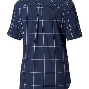 NEW Ladies Casual Button Up Stretch Shirt by Columbia, Dark Blue and White