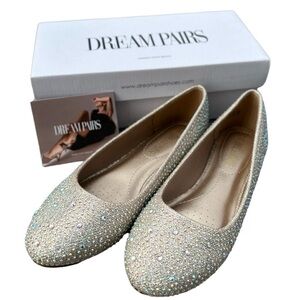 NEW Ladies Gold Sparkly Rhinestone Ballet Flats Shoes Size 8.5