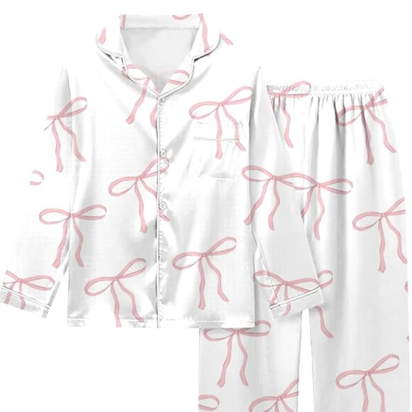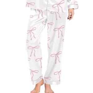 NEW Ladies Satin 2 Piece Bow Pajamas - Size XL