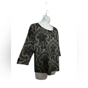 NEW, Laura, Paisley Print Top, Plus Size XXL, Black, Green & Beige