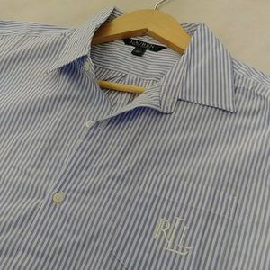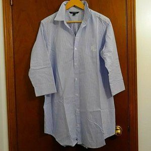 Sleep in Style...Night dress by Ralph Lauren in blue & white striped design. Chest pocket with logo embroidery and long sleeves which can be folded for a crisp look!