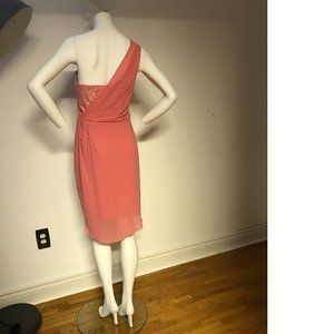MADE IN CANADA original LeChateau hard to find old stock. Delicate and Romantic, Chiffon/ floral lace pink corral rose one shoulder bodycon dress.