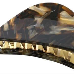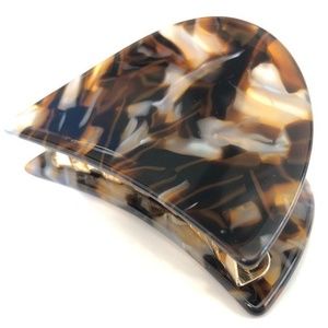 Brand new with dust bag butterfly clip. Made from hand-swirled gingerbread acetate and measuring 2 3/4" long and 1 1/2" tall. Use it to elevate the classic half-up hairstyle or to make a messy bun.