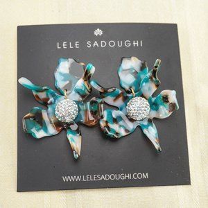 NEW Lele Sadoughi Crystal Lily Small Statement Earrings in Abalone