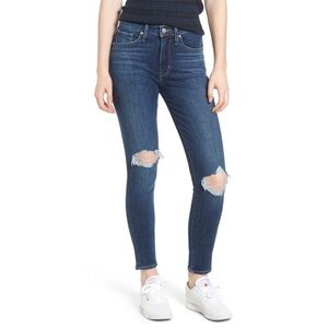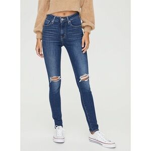 NWT Levi’s 721 high rise ripped skinny blue stretch denim jeans. 26W, 30W x 30L.