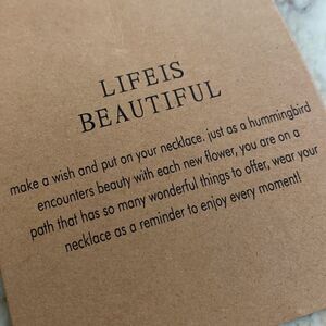 “make a wish and put on your necklace, just as a hummingbird encounters beauty with each new flower, you are on a path that has so many wonderful things to offer, wear your necklace as a reminder to enjoy every moment!”
