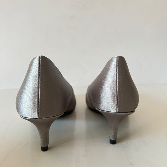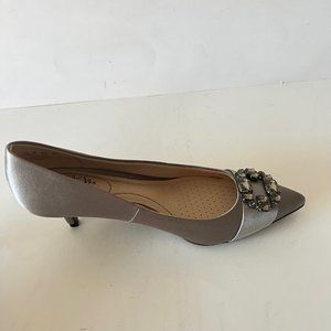 NEW LifeStride Satin Tonal Jewels Detail Cocktail Pump Shoes Pewter, Sz 7.5 M