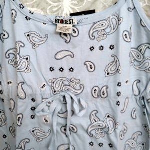 NEW Light Blue Cotton Nightie, Navy & White Paisley, M