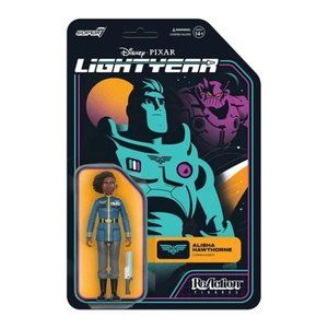 To infinity, and beyond! Packaged on a retro 6-inch by 9-inch cardback, the Lightyear Alisha Hawthorne 3 3/4-Inch ReAction Figure takes the heroes of the series and reimagines them as figures in the style of the 1970s and the 1980s. And these figures look great next to those classics! Collect them all. Ages 14 and up.