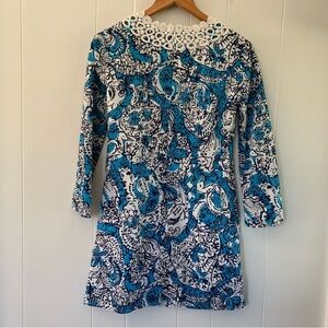 NEW Lilly Pulitzer Brooke Tunic Dress Hippy Hippy Shake Embroidered Pattern Blue