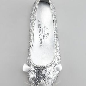 NEW Little Marc Jacobs Girls Silver Glitter Mouse Flats