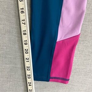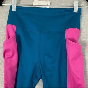 Lou & Grey Side Pocket Leggings / Yoga Pants / Activewear. Women's Tag Size Small. Polyester / spandex blend. Aqua Blue with pink side panels and pockets. Cropped length.