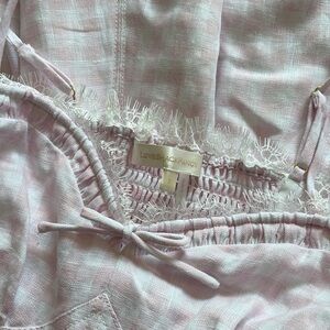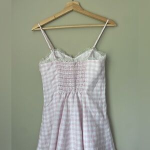NEW LoveShackFancy Shai Linen Gingham Mini Dress Pink | US 2 UK 6